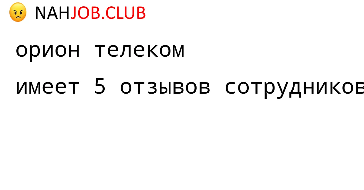 🔴 В базе Nahjob 5 отзывов и мнений бывших и действующих работников про ОРИОН ТЕЛЕКОМ. Это реальные отклики про зп, атмосферу, штрафы.