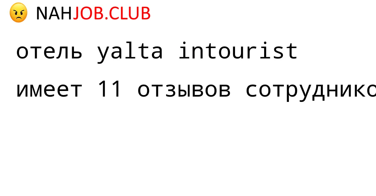 🔴 Мы собрали 1 отзыв бывших сотрудников про ОТЕЛЬ YALTA INTOURIST по городу Самара . Это данные изнутри про зарплату, коллектив, штрафы.