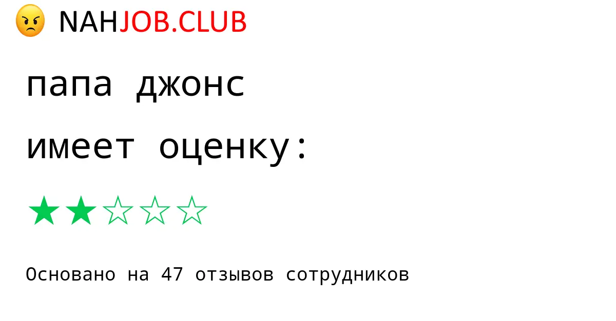 🔴 Изучаете вакансию менеджер компании ПАПА ДЖОНС? Почитайте 2 отзыва бывших сотрудников про работу по должности Менеджер в ПАПА ДЖОНС