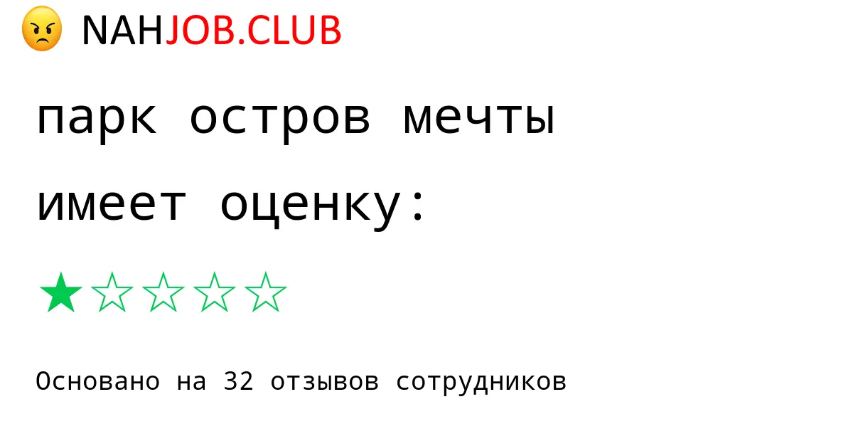 🔴 Мы собрали 32 отзыва бывших сотрудников про ПАРК ОСТРОВ МЕЧТЫ с рейтингом 1 из 5 . Это данные изнутри про зарплату, коллектив, штрафы.