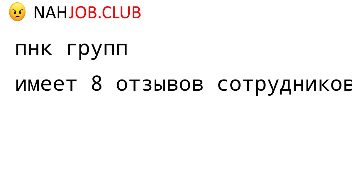 🔴 В базе Nahjob 8 отзывов и мнений бывших и действующих работников про ПНК ГРУПП. Это реальные отклики про зп, атмосферу, штрафы.