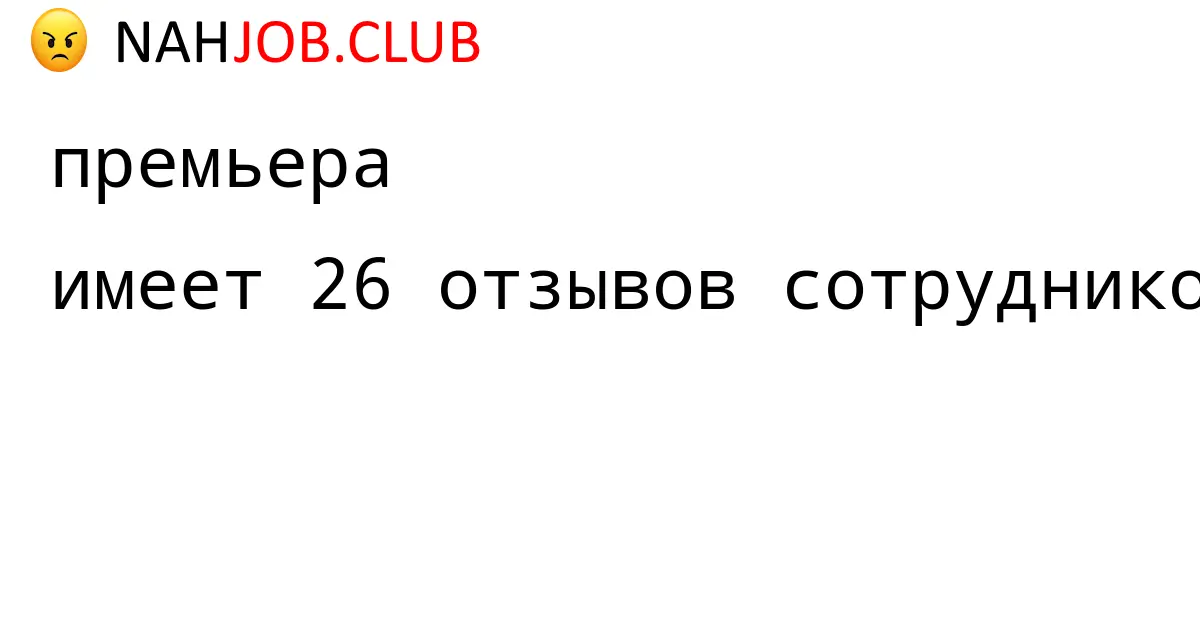 🔴 В списке 26 отзывов бывших работников про ПРЕМЬЕРА. Это искренние мнения про атмосферу, доходы, штрафы, отпуска.