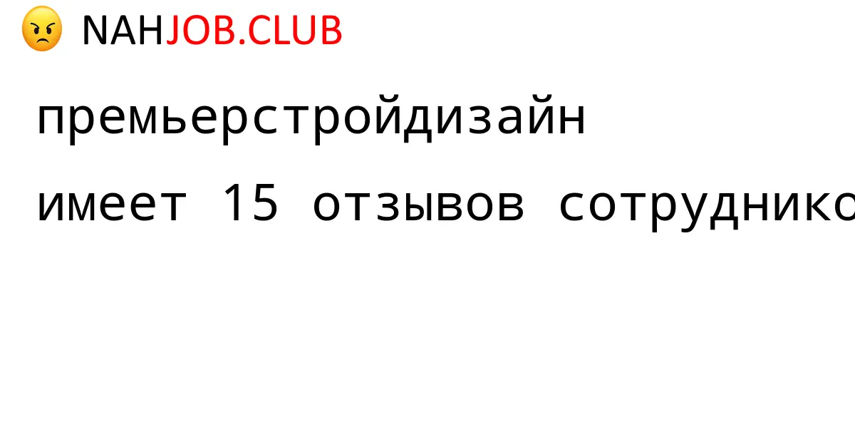 🔴 В базе Nahjob 1 отзыв и мнений бывших и действующих работников про ПРЕМЬЕРСТРОЙДИЗАЙН по городу Челябинск . Это реальные отклики про зп, атмосферу, штрафы.