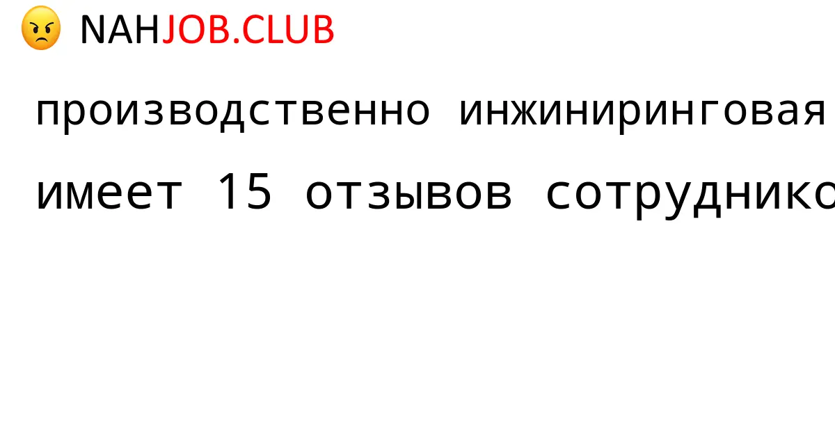 🔴 В базе Nahjob 15 отзывов и мнений бывших и действующих работников про ПРОИЗВОДСТВЕННО ИНЖИНИРИНГОВАЯ КОМПАНИЯ СБТ. Это реальные отклики про зп, атмосферу, штрафы.