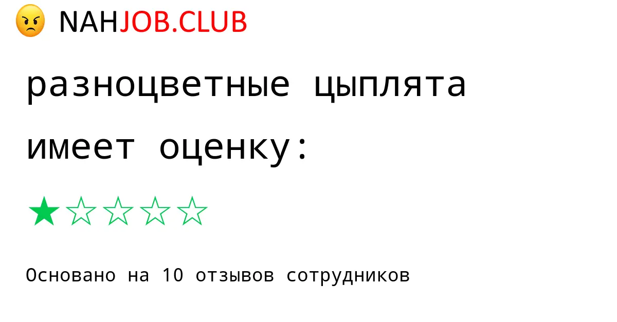 🔴 В базе Nahjob 1 отзыв и мнений бывших и действующих работников про РАЗНОЦВЕТНЫЕ ЦЫПЛЯТА по городу Калининград с рейтингом 1 из 5 . Это реальные отклики про зп, атмосферу, штрафы.