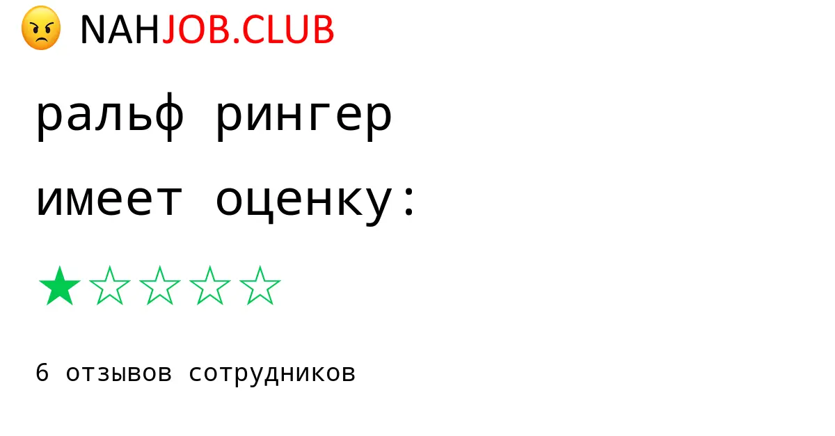 🔴 Изучаете вакансию кассир компании РАЛЬФ РИНГЕР? Почитайте 1 отзыв бывших сотрудников про работу по должности Кассир в РАЛЬФ РИНГЕР