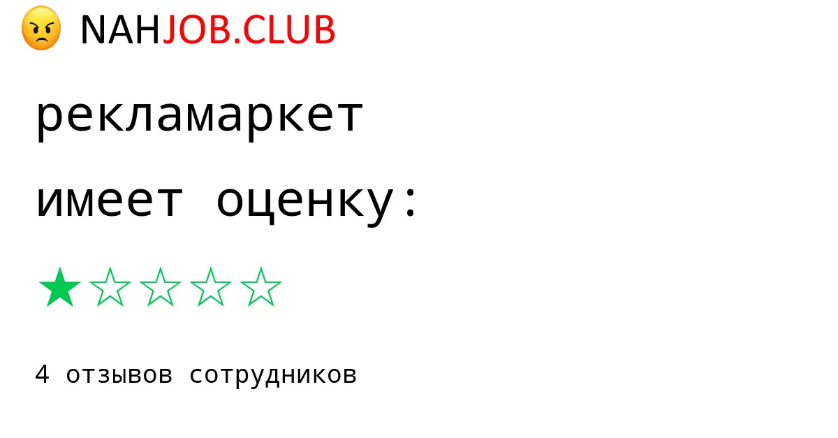 🔴 Изучаете вакансию менеджер компании РЕКЛАМАРКЕТ? Почитайте 1 отзыв бывших сотрудников про работу по должности Менеджер в РЕКЛАМАРКЕТ