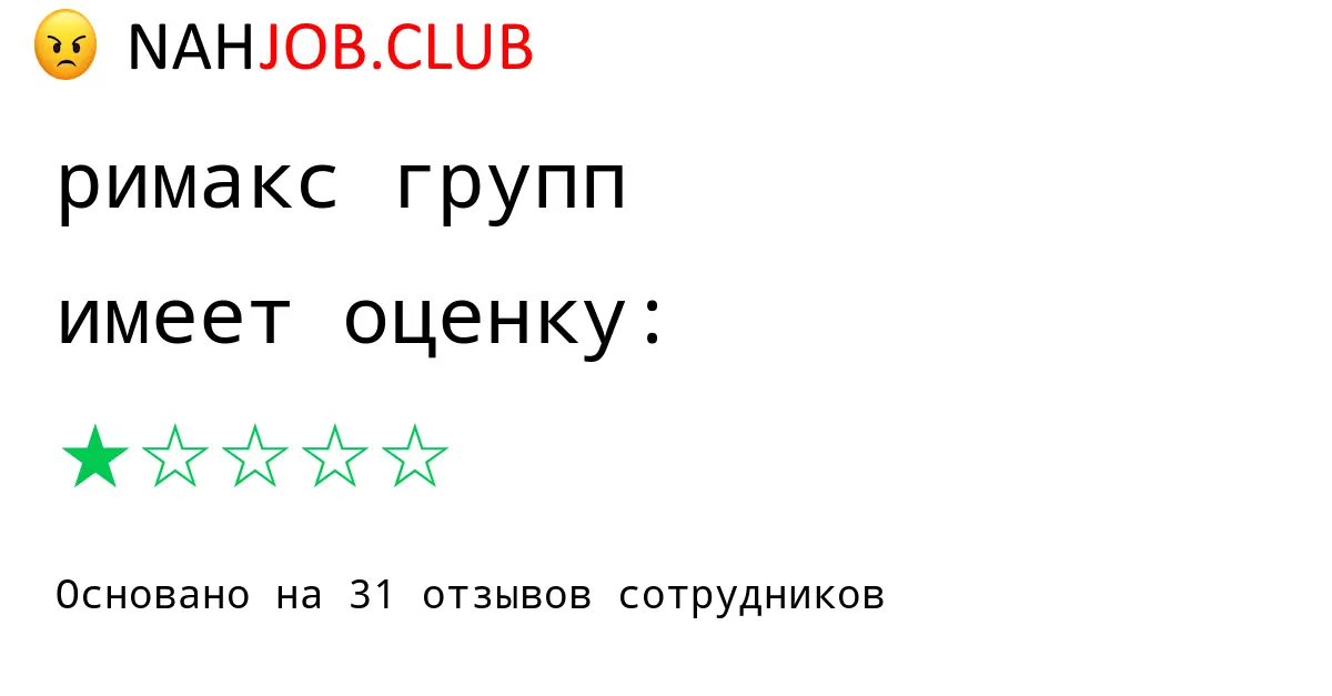 🔴 Изучаете вакансию начальник участка компании РИМАКС ГРУПП? Почитайте 1 отзыв бывших сотрудников про работу по должности Начальник участка в РИМАКС ГРУПП
