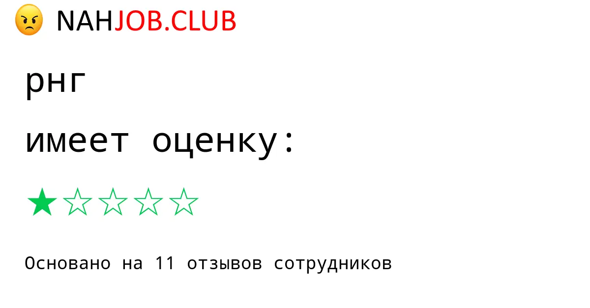 🔴 В базе Nahjob 11 отзывов и мнений бывших и действующих работников про РНГ с рейтингом 1 из 5 . Это реальные отклики про зп, атмосферу, штрафы.