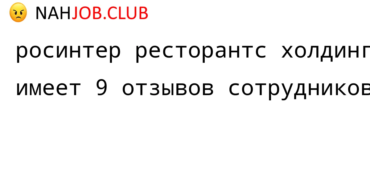 🔴 В базе Nahjob 1 отзыв и мнений бывших и действующих работников про РОСИНТЕР РЕСТОРАНТС ХОЛДИНГ по городу Снежинск . Это реальные отклики про зп, атмосферу, штрафы.