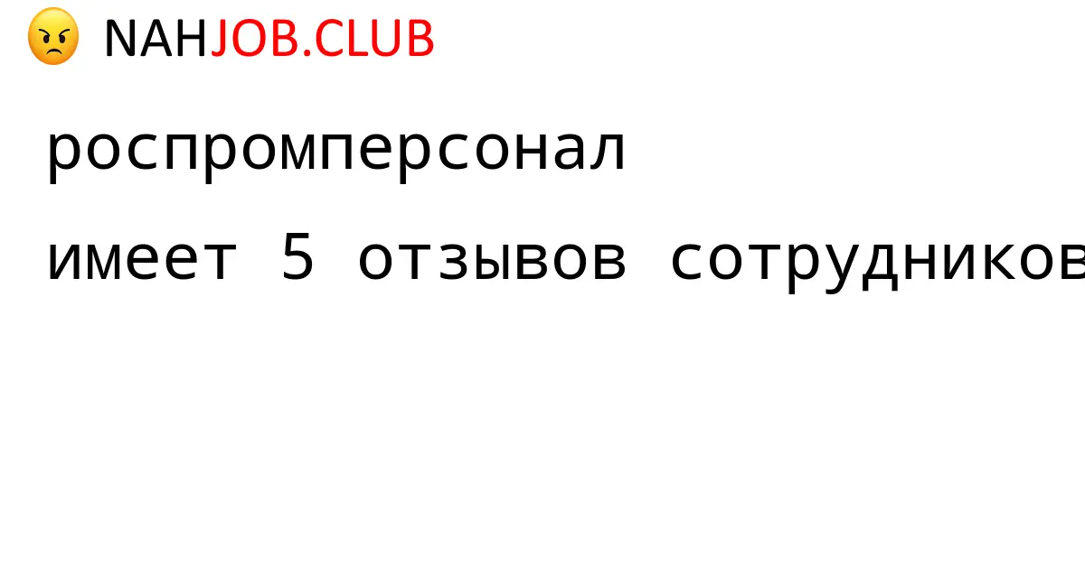 🔴 Мы собрали 5 отзывов бывших сотрудников про РОСПРОМПЕРСОНАЛ по городу Санкт-Петербург . Это данные изнутри про зарплату, коллектив, штрафы.