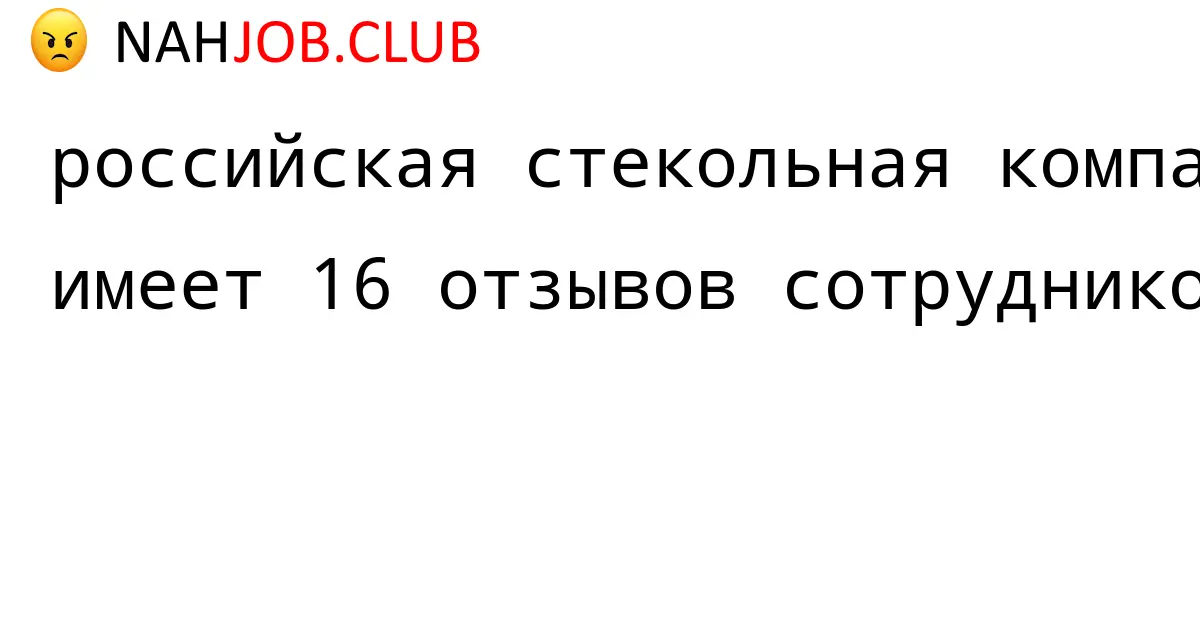 🔴 Изучаете вакансию Простой рабочий компании РОССИЙСКАЯ СТЕКОЛЬНАЯ КОМПАНИЯ? Почитайте 1 отзыв бывших сотрудников про работу по должности Простой рабочий в РОССИЙСКАЯ СТЕКОЛЬНАЯ КОМПАНИЯ