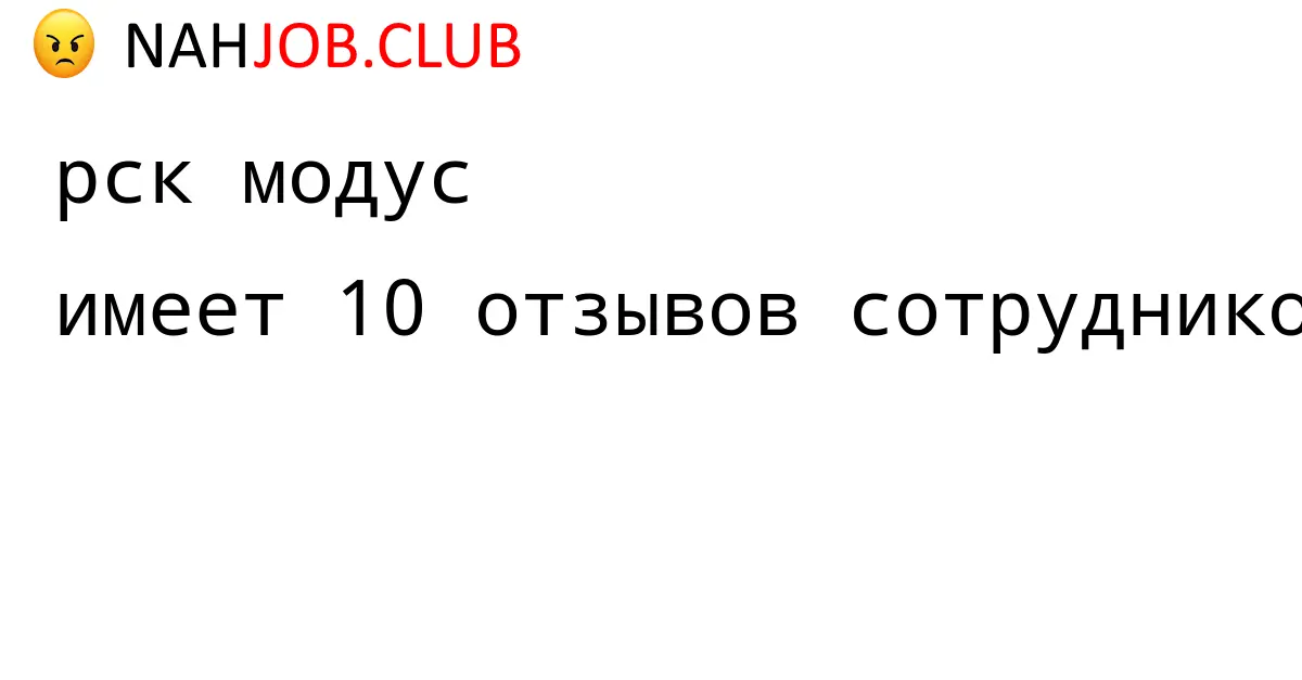 🔴 В базе Nahjob 10 отзывов и мнений бывших и действующих работников про РСК МОДУС. Это реальные отклики про зп, атмосферу, штрафы.
