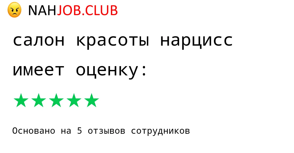 ✓ ПреимуществаРаботала 2 года в салоне. Комфортно, хороший коллектив — в принципе стабильный. Были текучки, но не долго. Зп выплачивают вовремя — зачастую даже раньше даты — не знаю почему пишут негативные отзывы другие люди — с этим проблем нет. Все устраивало. Ушла по причине переезда — если вернусь в Москву снова — не задумываясь вернулась бы в Нарцисс. Руководство кстати комфортное — не душит Далее →✗ НедостаткиЦены на услуги хотелось бы выше, но по рынку средние в Москве. Отпуск нужно планировать за месяца 2−3. Далее →