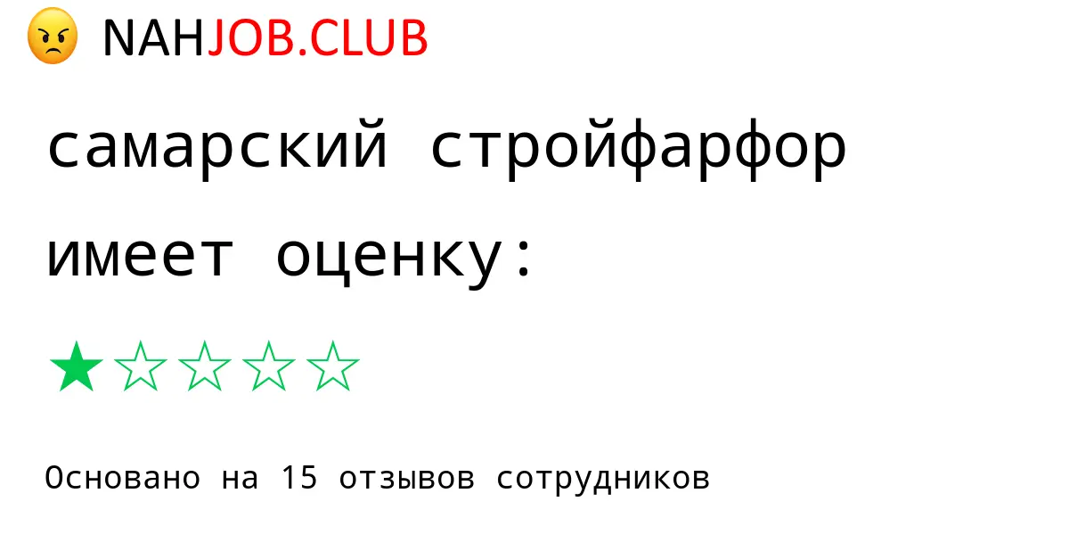 🔴 Изучаете вакансию рабочий компании САМАРСКИЙ СТРОЙФАРФОР? Почитайте 1 отзыв бывших сотрудников про работу по должности Рабочий в САМАРСКИЙ СТРОЙФАРФОР