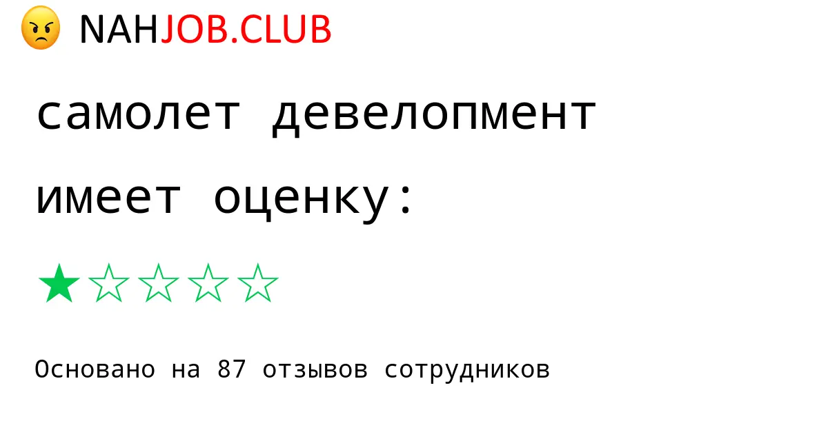 🔴 В списке 87 отзывов бывших работников про САМОЛЕТ ДЕВЕЛОПМЕНТ с рейтингом 1.8 из 5 . Это искренние мнения про атмосферу, доходы, штрафы, отпуска.