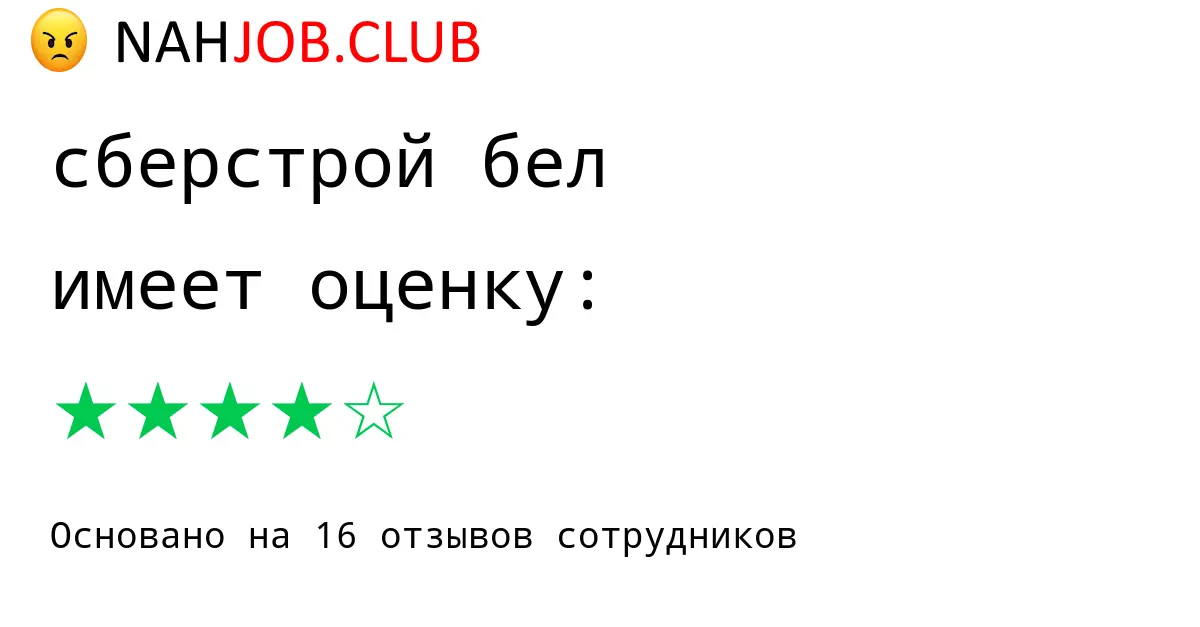🔴 В списке 16 отзывов бывших работников про СБЕРСТРОЙ БЕЛ с рейтингом 4 из 5 . Это искренние мнения про атмосферу, доходы, штрафы, отпуска.
