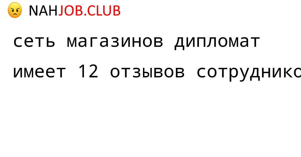 🔴 Изучаете вакансию менеджер компании СЕТЬ МАГАЗИНОВ ДИПЛОМАТ? Почитайте 1 отзыв бывших сотрудников про работу по должности Менеджер в СЕТЬ МАГАЗИНОВ ДИПЛОМАТ