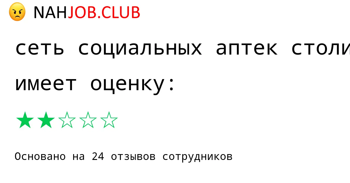 🔴 Изучаете вакансию фармацевт компании СЕТЬ СОЦИАЛЬНЫХ АПТЕК СТОЛИЧКИ? Почитайте 7 отзывов бывших сотрудников про работу по должности Фармацевт в СЕТЬ СОЦИАЛЬНЫХ АПТЕК СТОЛИЧКИ