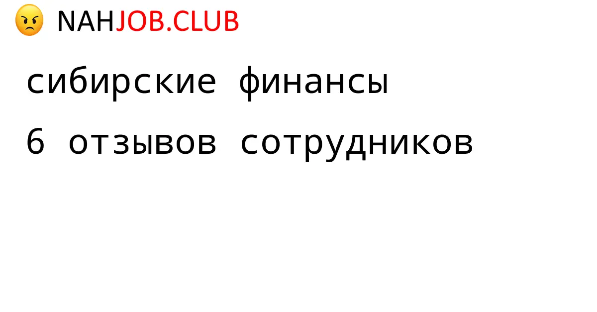 🔴 В базе Nahjob 6 отзывов и мнений бывших и действующих работников про СИБИРСКИЕ ФИНАНСЫ. Это реальные отклики про зп, атмосферу, штрафы.