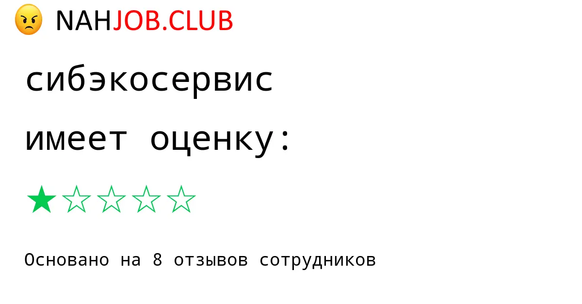 🔴 В базе Nahjob 8 отзывов и мнений бывших и действующих работников про СИБЭКОСЕРВИС с рейтингом 1 из 5 . Это реальные отклики про зп, атмосферу, штрафы.