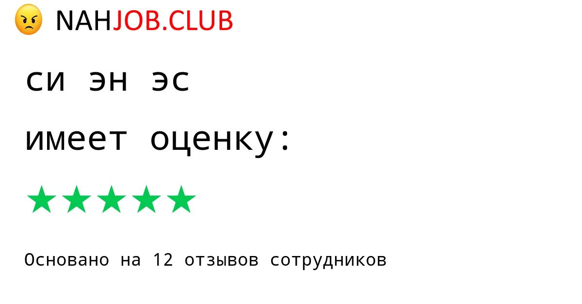 🔴 В списке 12 отзывов бывших работников про СИ ЭН ЭС с рейтингом 5 из 5 . Это искренние мнения про атмосферу, доходы, штрафы, отпуска.