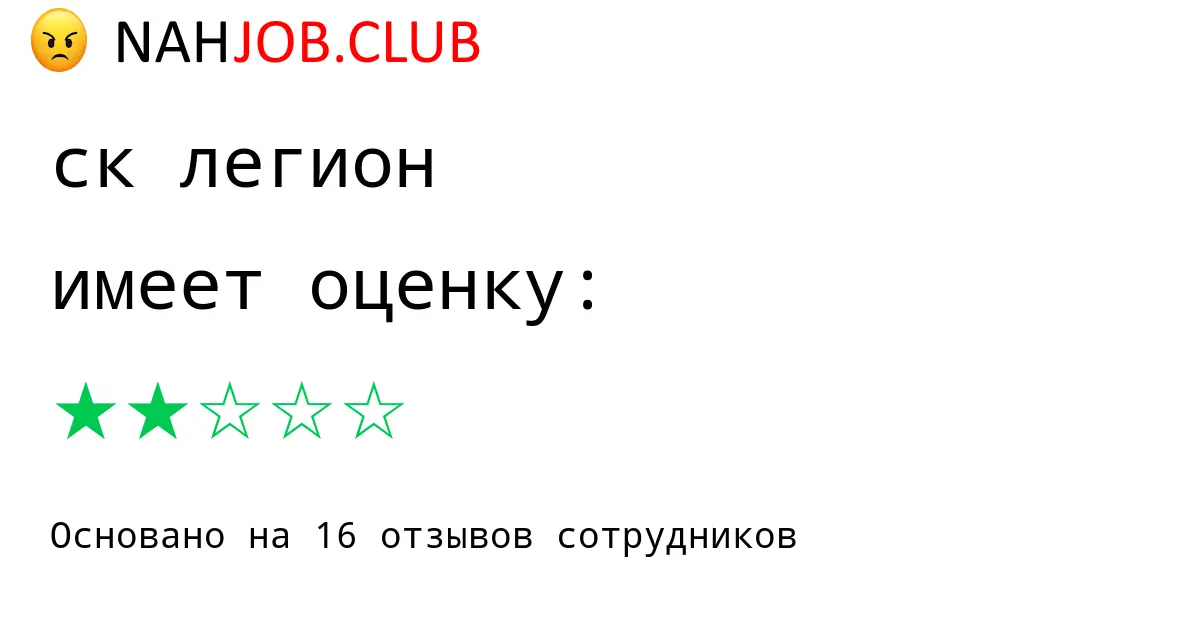 🔴 В списке 16 отзывов бывших работников про СК ЛЕГИОН с рейтингом 2 из 5 . Это искренние мнения про атмосферу, доходы, штрафы, отпуска.