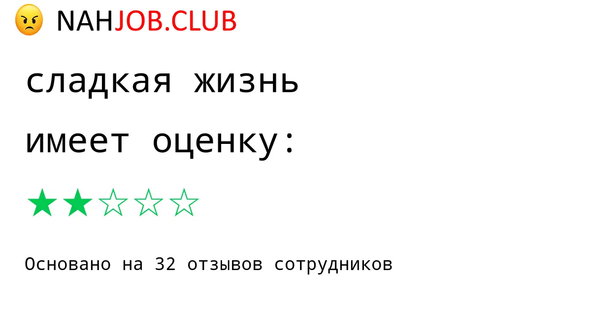 🔴 В базе Nahjob 1 отзыв и мнений бывших и действующих работников про СЛАДКАЯ ЖИЗНЬ по городу Ярославль . Это реальные отклики про зп, атмосферу, штрафы.