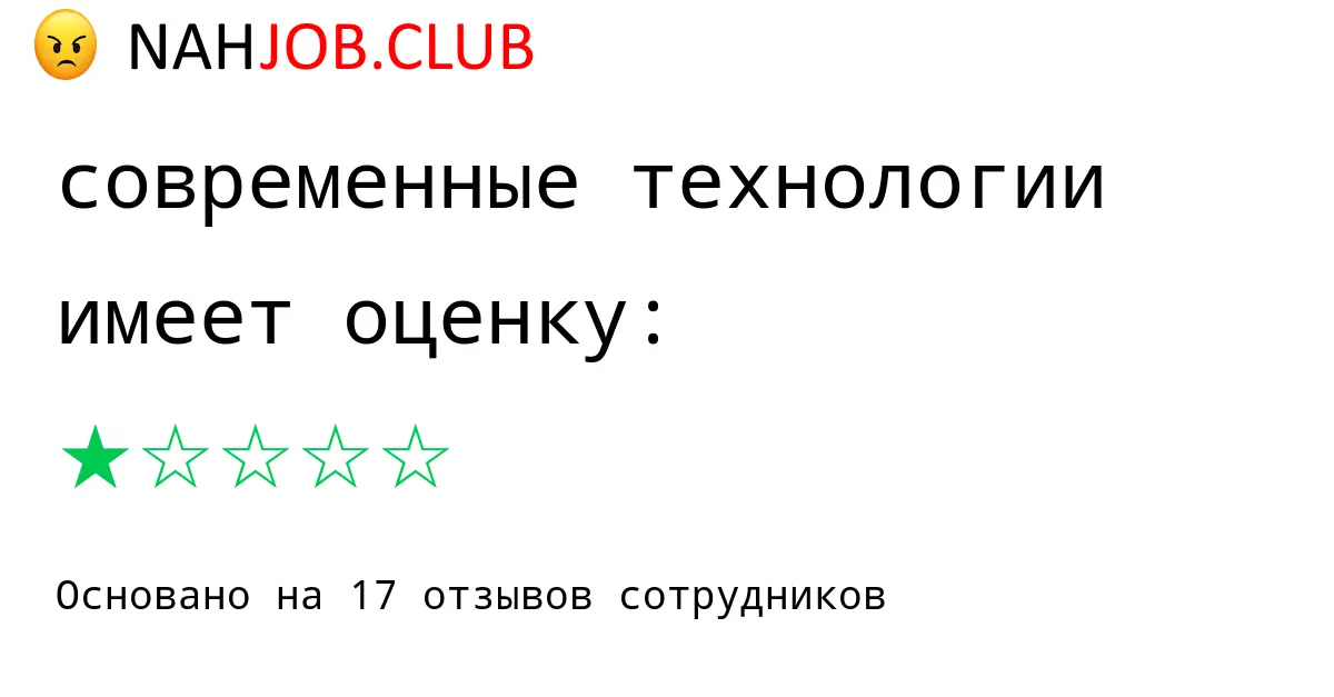 🔴 Мы собрали 1 отзыв бывших сотрудников про СОВРЕМЕННЫЕ ТЕХНОЛОГИИ по городу Кемерово с рейтингом 1 из 5 . Это данные изнутри про зарплату, коллектив, штрафы.