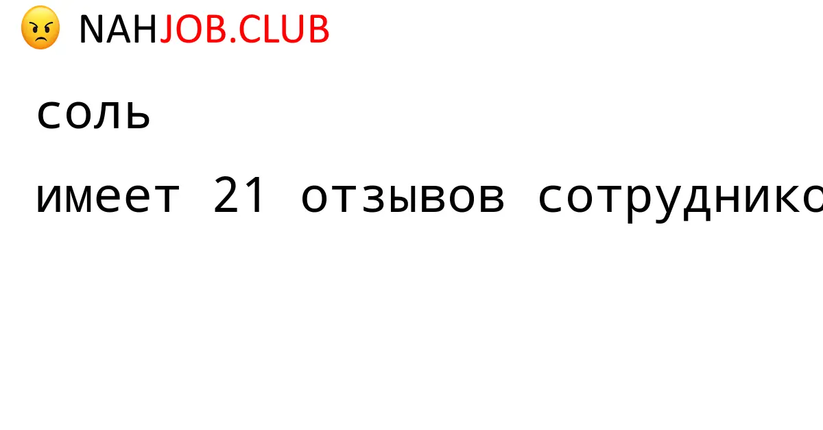 🔴 В базе Nahjob 21 отзыв и мнений бывших и действующих работников про СОЛЬ по городу Москва . Это реальные отклики про зп, атмосферу, штрафы.