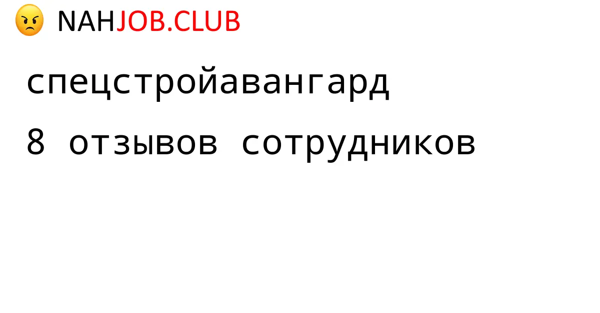 🔴 Мы собрали 1 отзыв бывших сотрудников про СПЕЦСТРОЙАВАНГАРД по городу Петропавловск-Камчатский . Это данные изнутри про зарплату, коллектив, штрафы.
