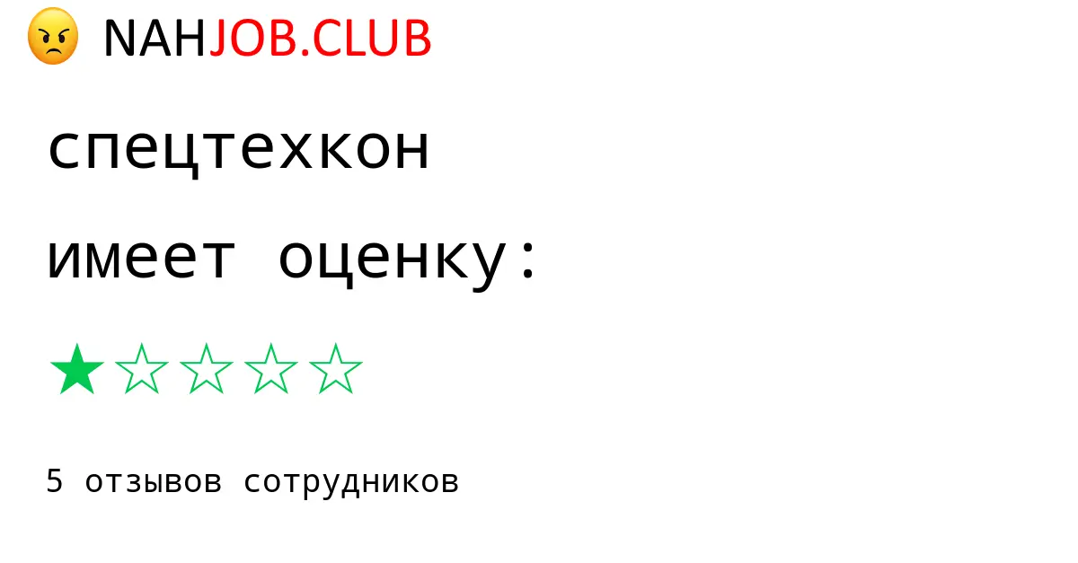 🔴 Мы собрали 5 отзывов бывших сотрудников про СПЕЦТЕХКОН по городу Саратов с рейтингом 1.8 из 5 . Это данные изнутри про зарплату, коллектив, штрафы.
