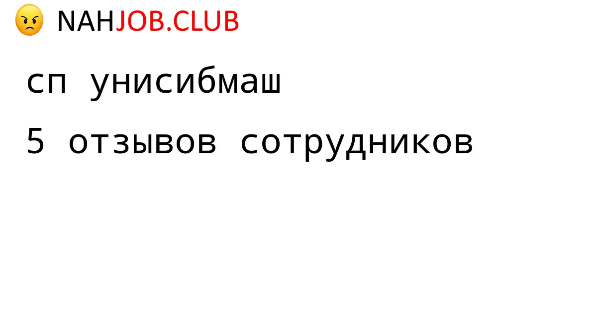 🔴 Изучаете вакансию специалист компании СП УНИСИБМАШ? Почитайте 1 отзыв бывших сотрудников про работу по должности Специалист в СП УНИСИБМАШ
