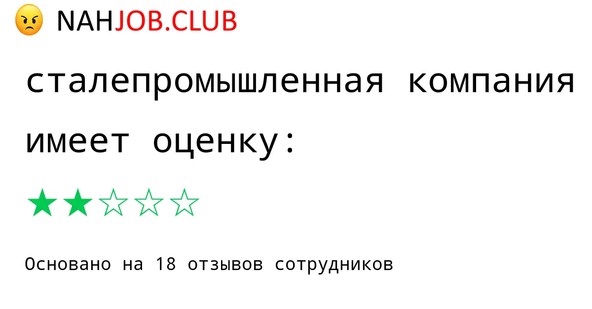 ✓ ПреимуществаАссортимент, близость к городу, неплохой в целом коллектив и люди Далее →✗ НедостаткиПолитика руководства постоянно увольнять, увольнять, увольнять. Долго в этой компании никто не держится. ЗП средняя по рынку 50−70, требуют так, что душу вынут. Для руководства вы рабы и расходный материал, начиная от стропальщиков, заканчивая мастерами, которых меняют, не думая, считая, что подойдет любой. Если вас убьет или чем-то придавит на работе, быстро заметут следы. Как в 2014 г. они скрыли смерть узбекского работника на производстве, которого убило бухтой арматуры в 900 кг, которая упала ему на голову. Быстро заплатили всем денег, оплатили похороны и замели следы. Далее →