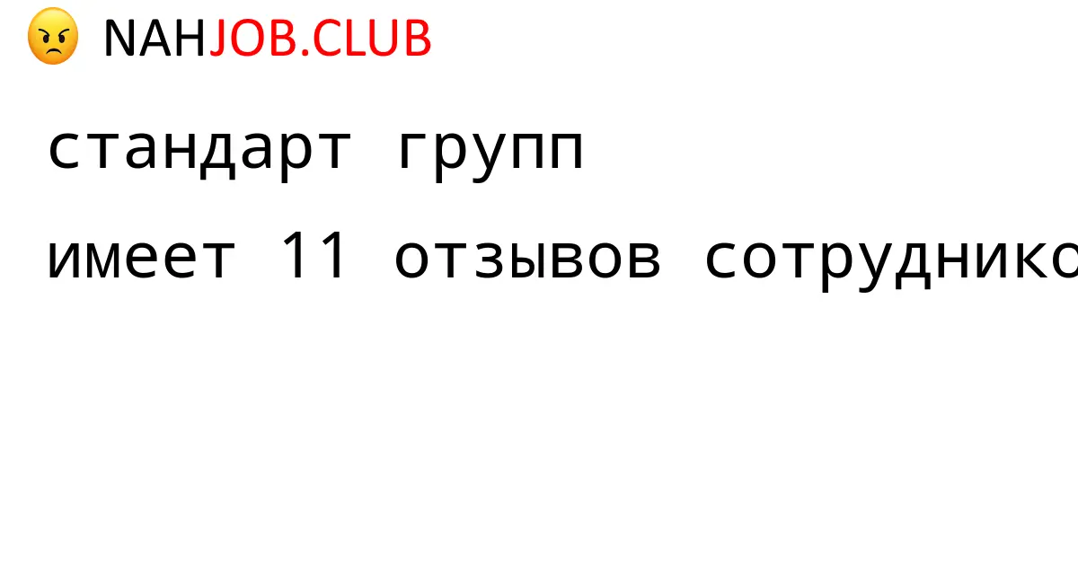 🔴 В базе Nahjob 11 отзывов и мнений бывших и действующих работников про СТАНДАРТ ГРУПП. Это реальные отклики про зп, атмосферу, штрафы.