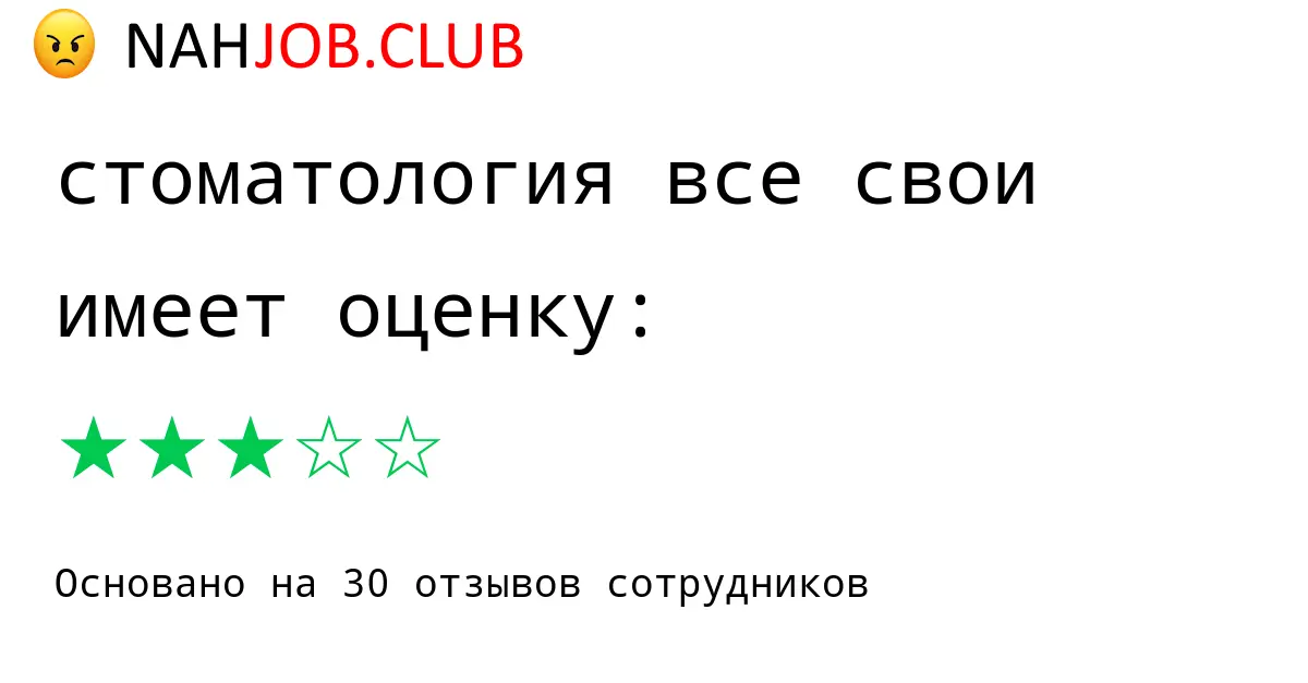🔴 Изучаете вакансию медсестра компании СТОМАТОЛОГИЯ ВСЕ СВОИ? Почитайте 1 отзыв бывших сотрудников про работу по должности Медсестра в СТОМАТОЛОГИЯ ВСЕ СВОИ