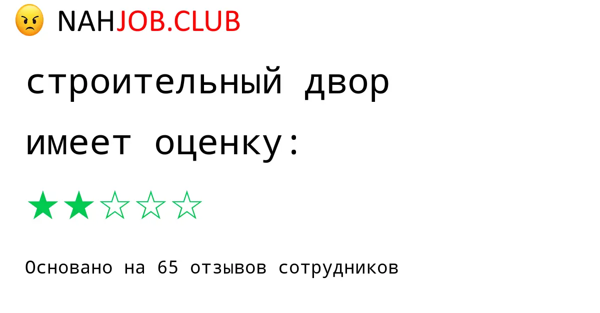🔴 Мы собрали 65 отзывов бывших сотрудников про СТРОИТЕЛЬНЫЙ ДВОР с рейтингом 2.3 из 5 . Это данные изнутри про зарплату, коллектив, штрафы.