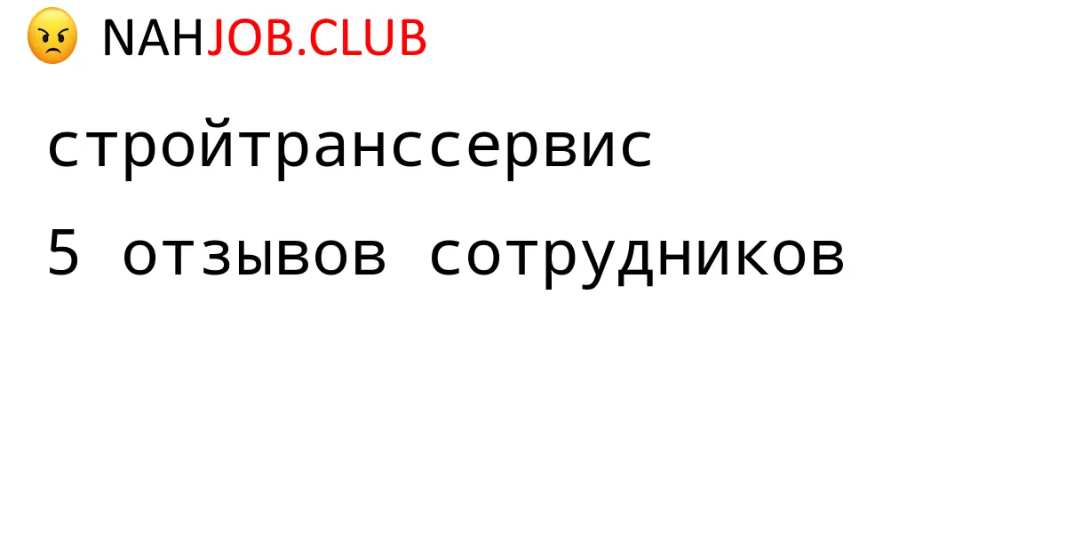 🔴 В базе Nahjob 1 отзыв и мнений бывших и действующих работников про СТРОЙТРАНССЕРВИС по городу Великий Новгород . Это реальные отклики про зп, атмосферу, штрафы.