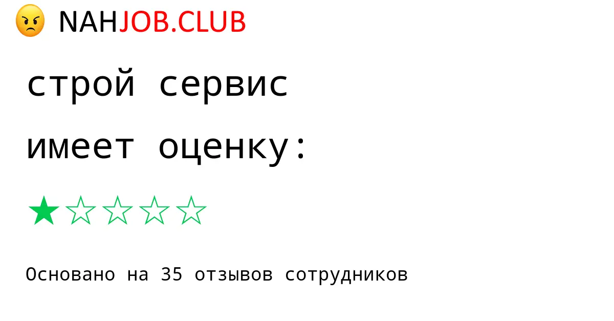 🔴 Изучаете вакансию генеральный директор компании СТРОЙ СЕРВИС? Почитайте 1 отзыв бывших сотрудников про работу по должности Генеральный директор в СТРОЙ СЕРВИС