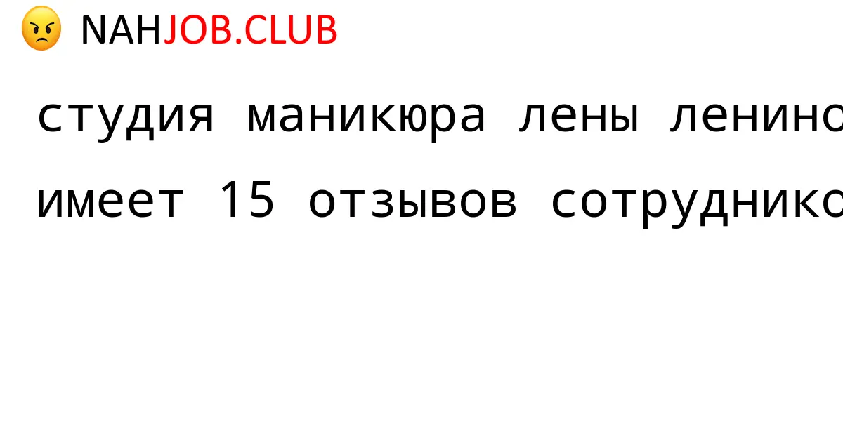 🔴 Изучаете вакансию директрисa компании СТУДИЯ МАНИКЮРА ЛЕНЫ ЛЕНИНОЙ? Почитайте 1 отзыв бывших сотрудников про работу по должности Директрисa в СТУДИЯ МАНИКЮРА ЛЕНЫ ЛЕНИНОЙ