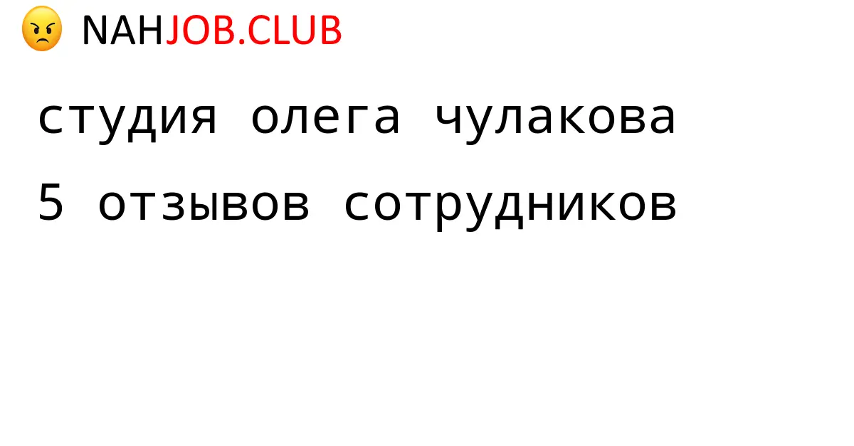 🔴 Изучаете вакансию дизайнер компании СТУДИЯ ОЛЕГА ЧУЛАКОВА? Почитайте 1 отзыв бывших сотрудников про работу по должности Дизайнер в СТУДИЯ ОЛЕГА ЧУЛАКОВА