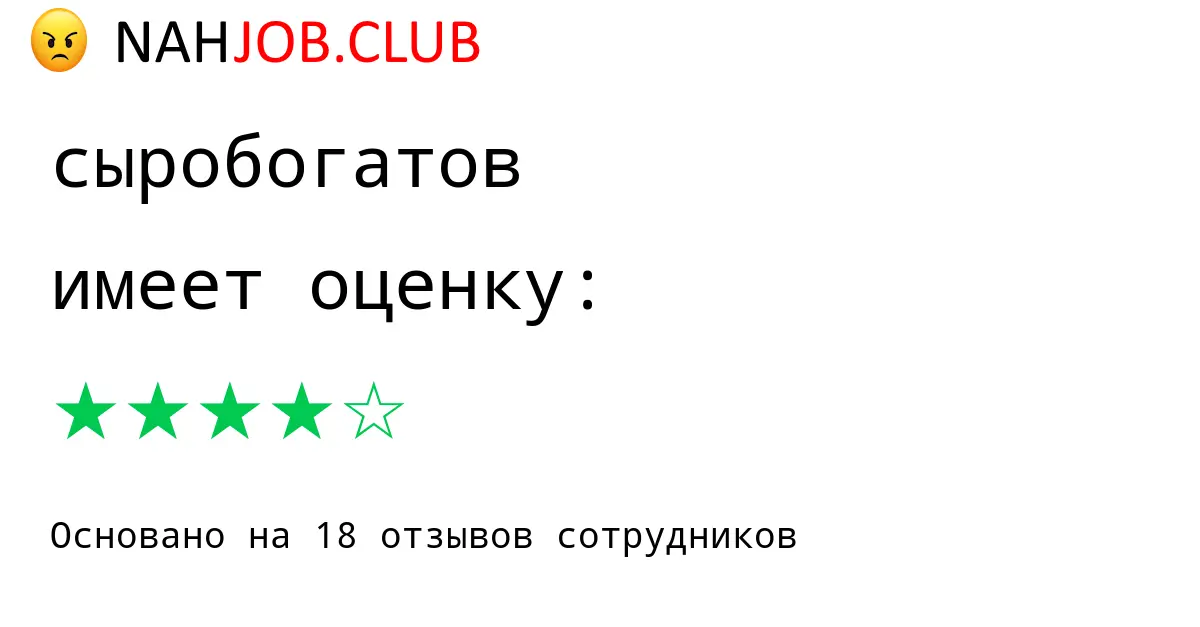 🔴 Мы собрали 18 отзывов бывших сотрудников про СЫРОБОГАТОВ с рейтингом 4.5 из 5 . Это данные изнутри про зарплату, коллектив, штрафы.