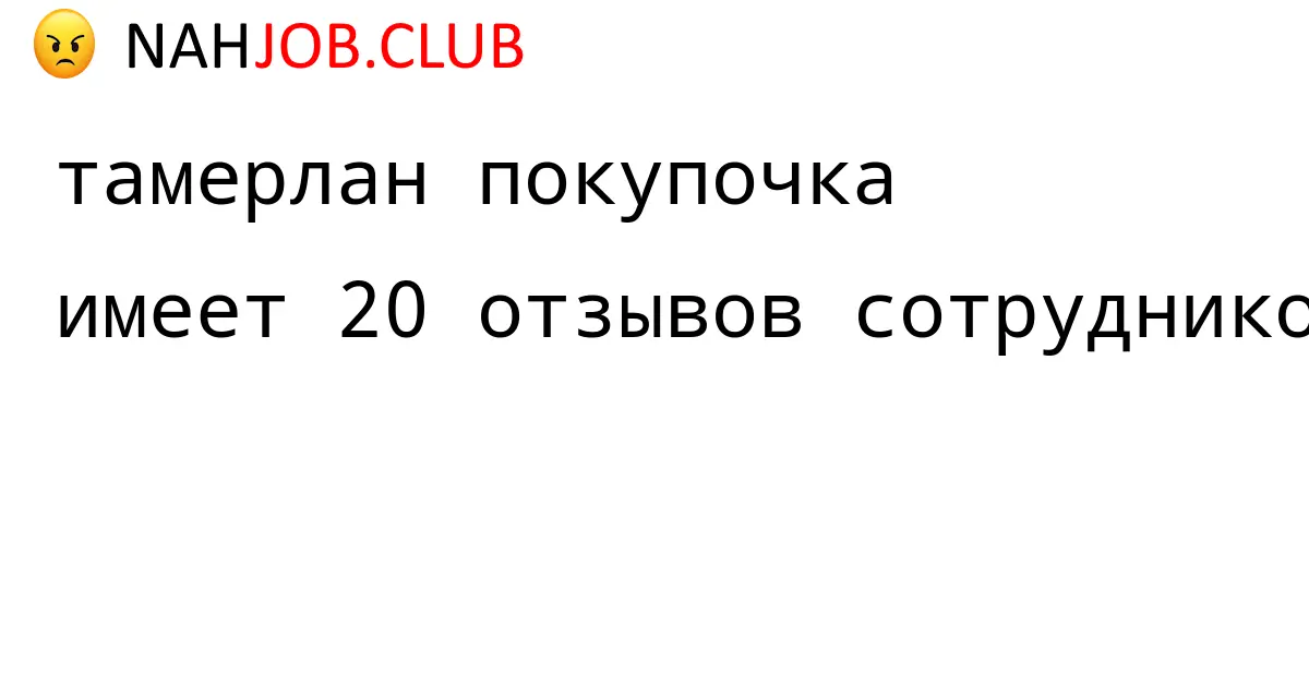 🔴 В базе Nahjob 2 отзыва и мнений бывших и действующих работников про ТАМЕРЛАН ПОКУПОЧКА по городу Волжский . Это реальные отклики про зп, атмосферу, штрафы.