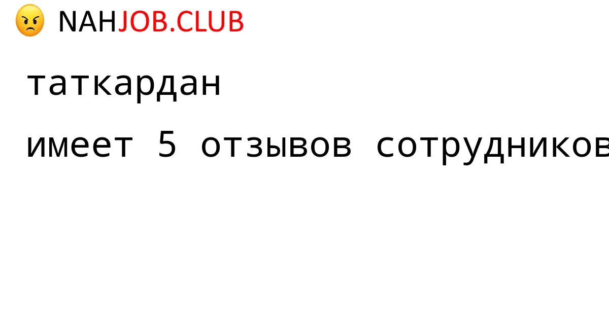 🔴 Мы собрали 5 отзывов бывших сотрудников про ТАТКАРДАН по городу Казань . Это данные изнутри про зарплату, коллектив, штрафы.