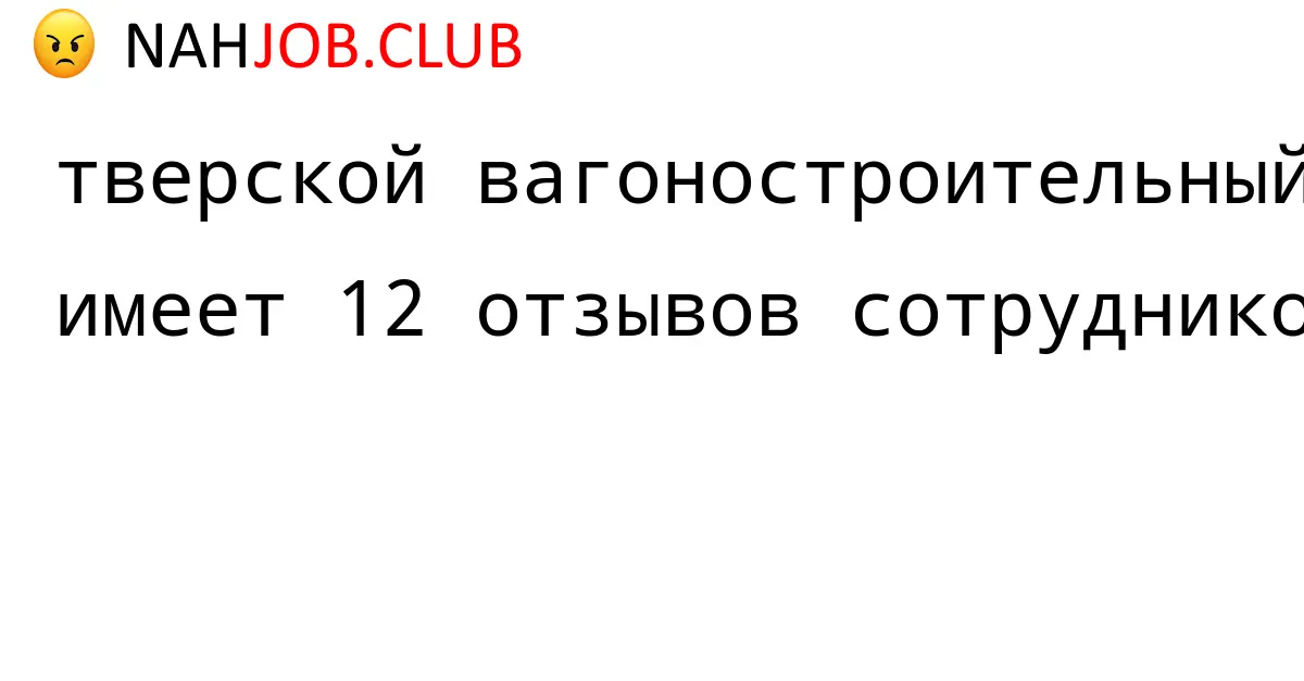 🔴 В базе Nahjob 12 отзывов и мнений бывших и действующих работников про ТВЕРСКОЙ ВАГОНОСТРОИТЕЛЬНЫЙ ЗАВОД. Это реальные отклики про зп, атмосферу, штрафы.