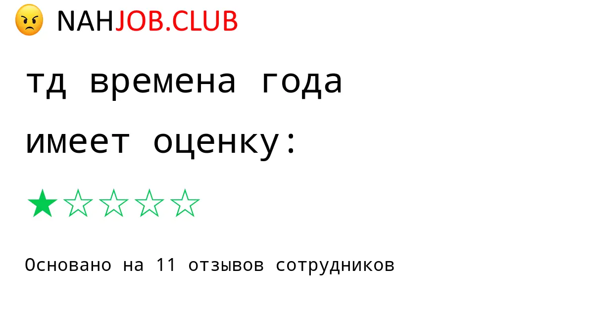 🔴 В списке 11 отзывов бывших работников про ТД ВРЕМЕНА ГОДА по городу Тула с рейтингом 1 из 5 . Это искренние мнения про атмосферу, доходы, штрафы, отпуска.