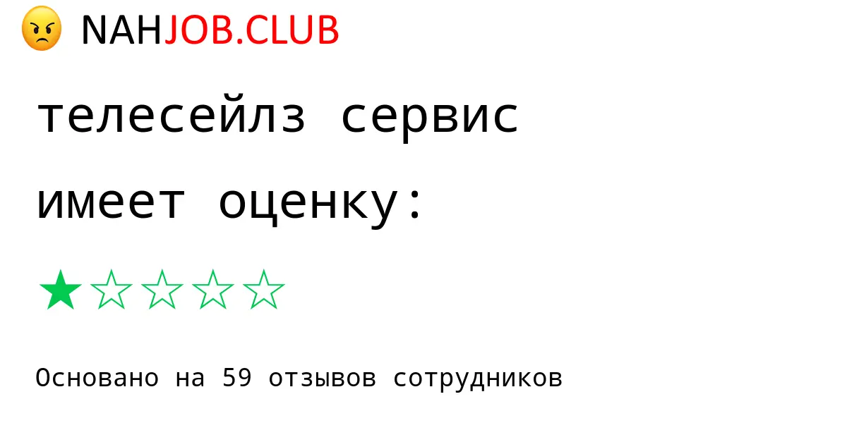 🔴 В базе Nahjob 1 отзыв и мнений бывших и действующих работников про ТЕЛЕСЕЙЛЗ СЕРВИС по городу Ростов-на-Дону . Это реальные отклики про зп, атмосферу, штрафы.