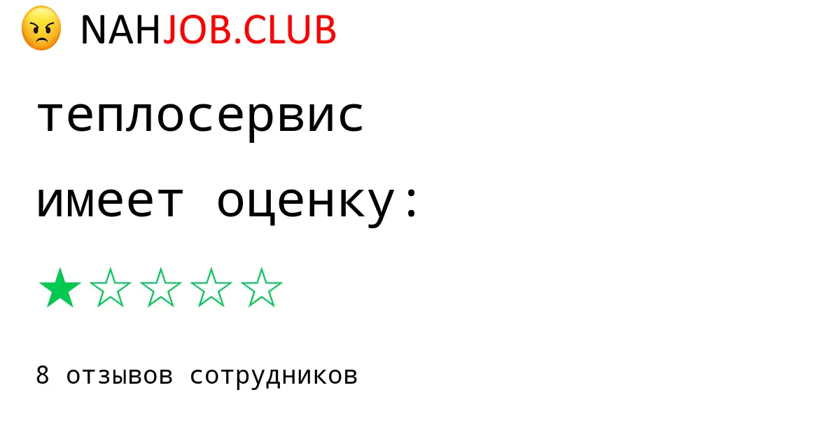 🔴 В базе Nahjob 2 отзыва и мнений бывших и действующих работников про ТЕПЛОСЕРВИС по городу Таганрог с рейтингом 1 из 5 . Это реальные отклики про зп, атмосферу, штрафы.