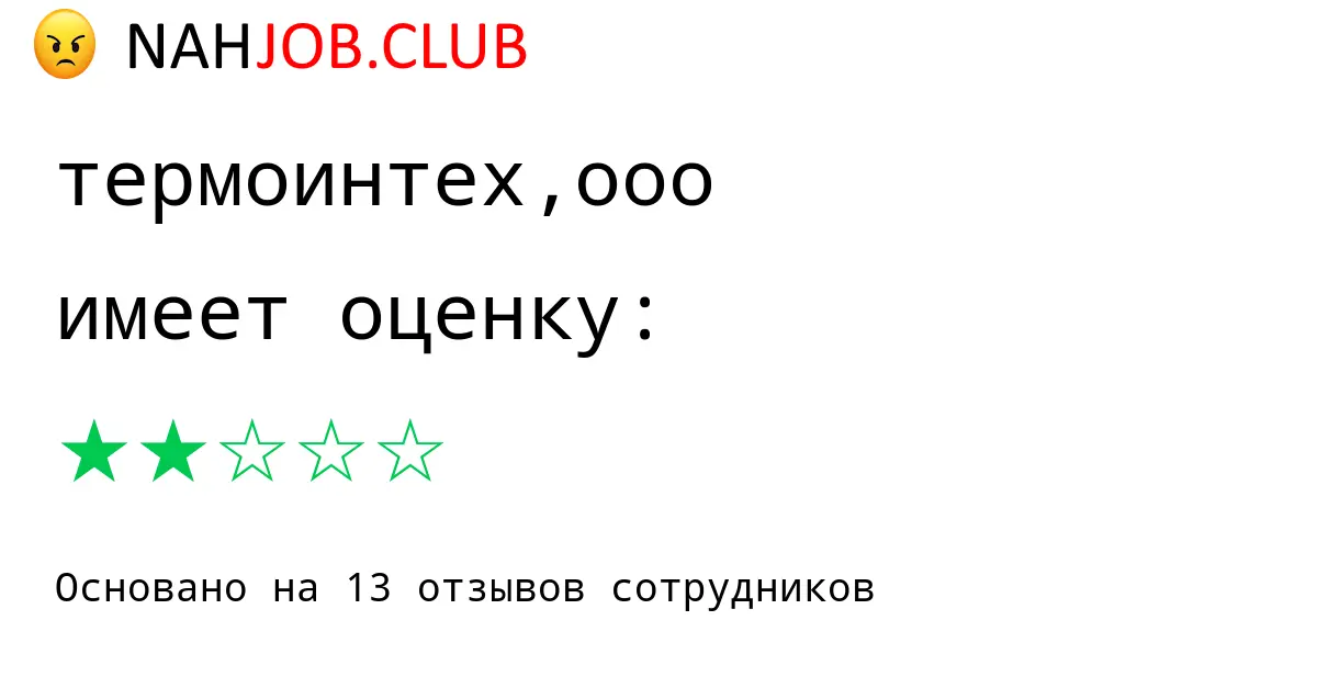 🔴 Мы собрали 1 отзыв бывших сотрудников про ТЕРМОИНТЕХ,ООО по городу Надым . Это данные изнутри про зарплату, коллектив, штрафы.