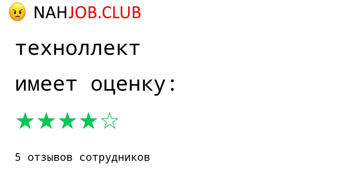 🔴 В базе Nahjob 5 отзывов и мнений бывших и действующих работников про ТЕХНОЛЛЕКТ с рейтингом 4 из 5 . Это реальные отклики про зп, атмосферу, штрафы.